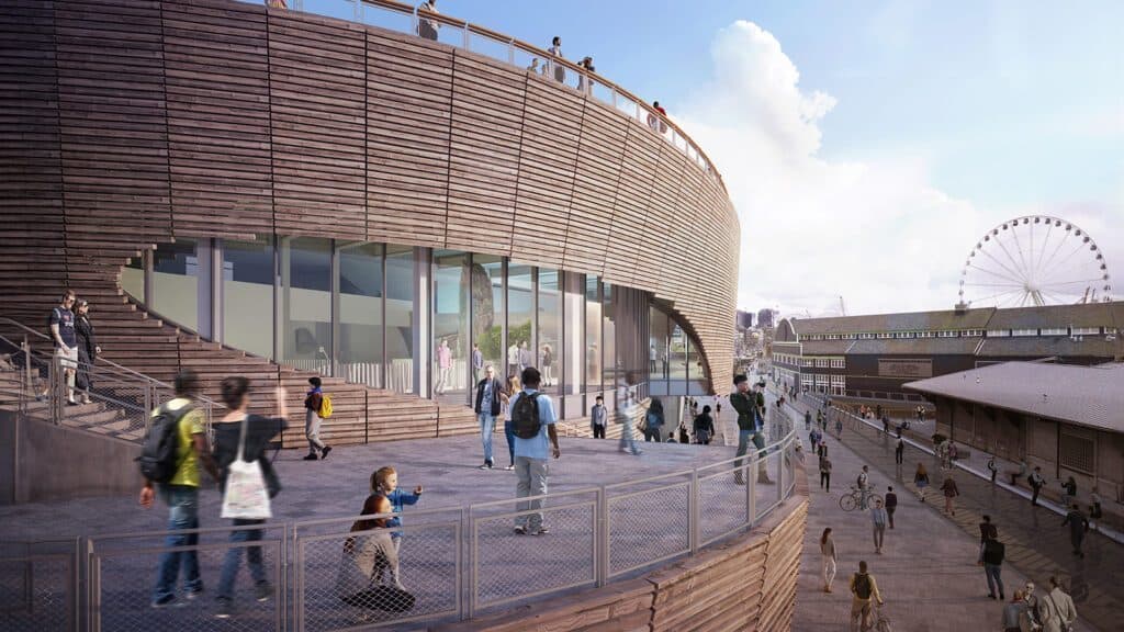 The rooftop of the pavilion will connect to the city’s Overlook Walk, scheduled to open this fall. When completed, it will connect Pike Place Market to the waterfront.